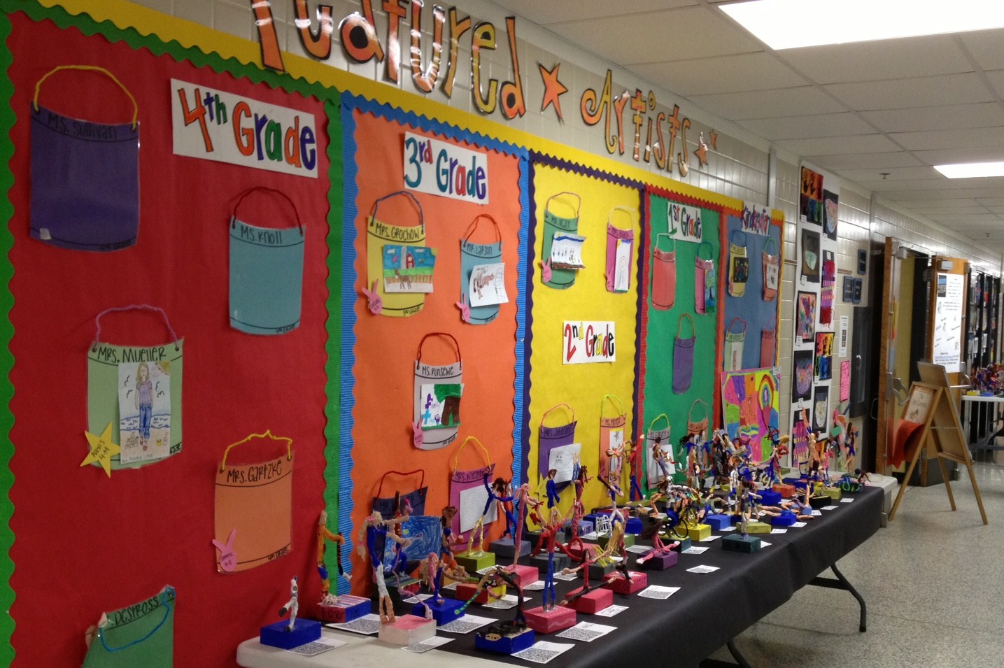 | The halls became an art gallery, while the cafeteria was filled with creation stations for making bookmarks and adding to a mural. |